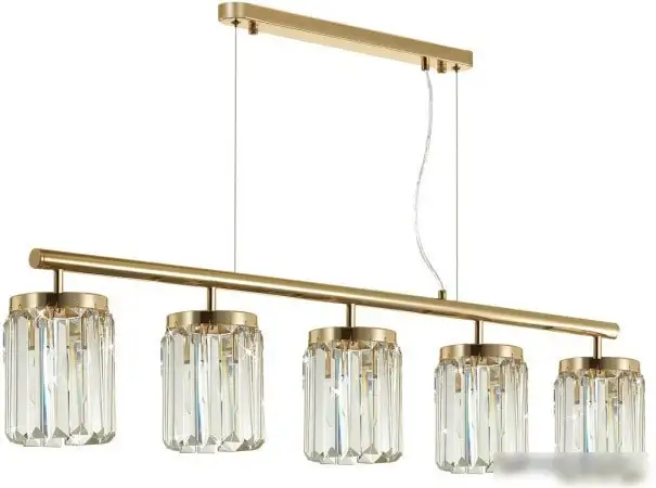 Подвесная люстра Odeon Light Vassa 4987/5 создаёт в комнате атмосферу легкости и элегантности. Её широкий абажур из хрусталя в неоклассическом стиле красиво рассеет свет и добавит роскоши интерьеру. Люстра оснащена пятью лампами мощностью по 200 Вт каждая, что обеспечивает яркое освещение. Каркас выполнен из металла в золотистом цвете, а плафоны изготовлены из пластика с матовой поверхностью. Размеры: длина 109,2 см, ширина 113 см, высота 125 см, что делают её подходящей для просторных помещений. Устройство не имеет встроенного выключателя или дистанционного управления, поэтому управление осуществляется через выключатели на стене. Благодаря прочному материалу и качественной сборке, люстра долго сохраняет свой внешний вид. Ее дизайн отлично впишется в интерьер, где нужно подчеркнуть стиль и уют. Люстра не предназначена для детской комнаты или промышленного использования.