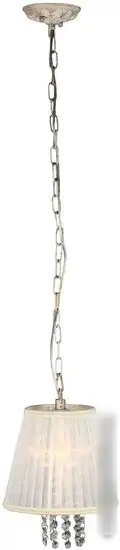 | Информация | Светильник подвесной металлический, цвет покрытия - белый с золотом. Плафон из полупрозрачной ткани. Светильник выполнен в классическом стиле, декорирован хрустальными подвесками. В светильнике используется 1 лампа накаливания на 40 Ватт. Рекомендуемая площадь освещения 2 кв.м. Если использовать энергосберегающие лампы, можно увеличить площадь освещения. Есть возможность регулировки высоты светильника за счёт цепи. Способ крепления: вешается на крючок. В комплекте: гарантийный талон, схема сборки, крючок. Гарантия 2 года. |