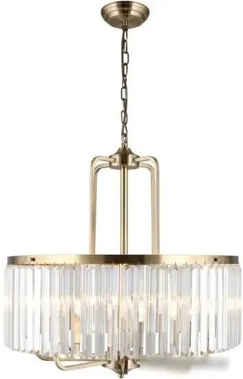 подвесная люстра, 8×40 Вт, плафон прозрачный, каркас золотистый