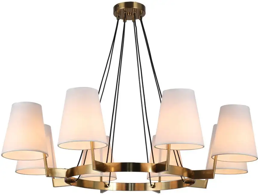 Подвесная люстра Omnilux Camlez OML-68603-08 отлично подойдет для освещения комнаты площадью до 16 м². Она имеет восемь ламп мощностью 320 Вт, что обеспечивает яркое и равномерное освещение. Люстра выполнена в классическом стиле и сочетает бронзовый каркас с белыми плафонами из пластика и текстиля. Размеры устройства — 90 см в длину и ширину и 100 см в высоту, что делает её заметным элементом интерьера. Благодаря металлическому каркасу и пластикам она прочная и легкая — вес всего 3 кг. Люстра крепится к потолку на планку и не имеет регулировки яркости или дистанционного управления. Она не поворотная, поэтому свет равномерно освещает пространство. Для работы нужны стандартные лампочки типа E14, в комплекте они не идут. Оставляя простую и практичную конструкцию, эта люстра хорошо впишется в любой классический интерьер.