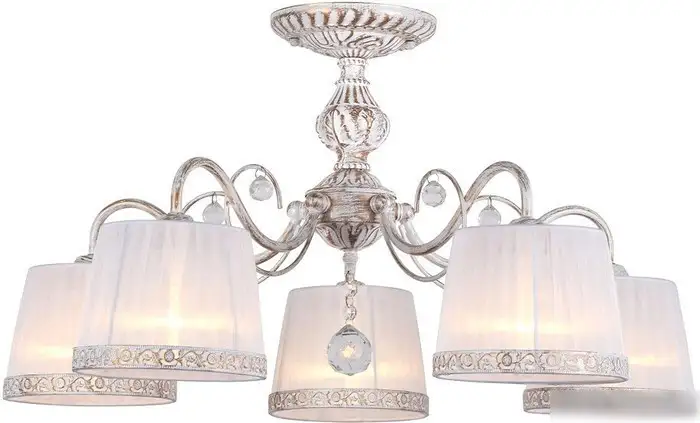 Эта люстра средней высоты отлично подойдет для любой комнаты с классическим интерьером. Она располагаться на потолке и имеет пять ламп мощностью по 40 Вт, которые обеспечивают яркое освещение. Плафоны выполнены из белого текстиля, а каркас сделан из металла в белом цвете, что делает дизайн аккуратным и стильным. Люстра длиной и шириной по 65 см легко впишется в просторное помещение, а высота 35,5 см позволяет разместить её под потолком. В комплект входит лампочка, поэтому ее можно сразу включать. Каркас и плафоны легко выдерживают ежедневное использование. Надежное крепление на планке обеспечивает безопасность и простоту монтажа. Люстра отлично сочетает классический дизайн и простые материалы, даря уют и стиль в интерьере.