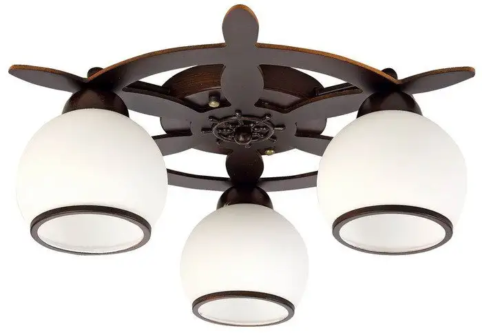 люстра, 3×60 Вт, плафон белый, каркас красный/коричневый