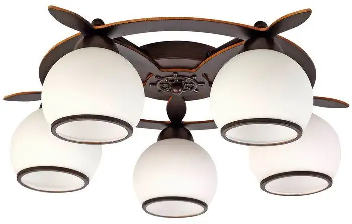 люстра, 5×60 Вт, плафон белый, каркас красный/коричневый