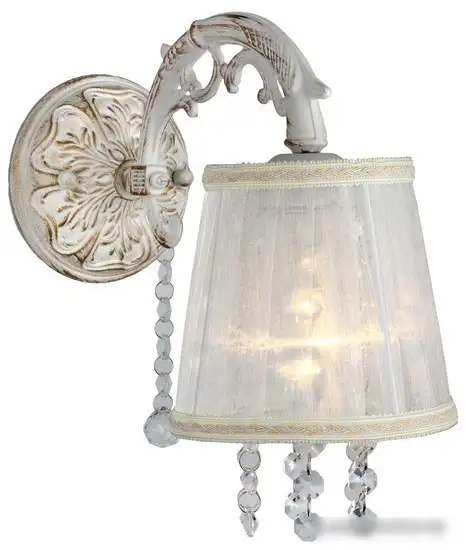 Бра Omnilux OML-30001-01 отлично подходит для домашнего освещения и создаёт приятную атмосферу. Оно оснащено одной лампой мощностью 40 Вт с цоколём E14, которая работает на накаливании и люминесцентных лампах. Бра имеет белый текстильный плафон и металлическую основу в белом и золотистом цвете, что придаёт ему классический стиль. Устройство расположено на планке и не имеет пульта дистанционного управления. Размеры — длина 28 см, ширина 14 см и высота 27 см, а вес — 0,7 кг. Каркас сделан из металла и украшен хрусталём, а плафон — из текстиля, что обеспечивает приятное рассеивание света. Конструкция не предусматривает поворотных элементов и датчиков движения, поэтому закрепляется над стеной.