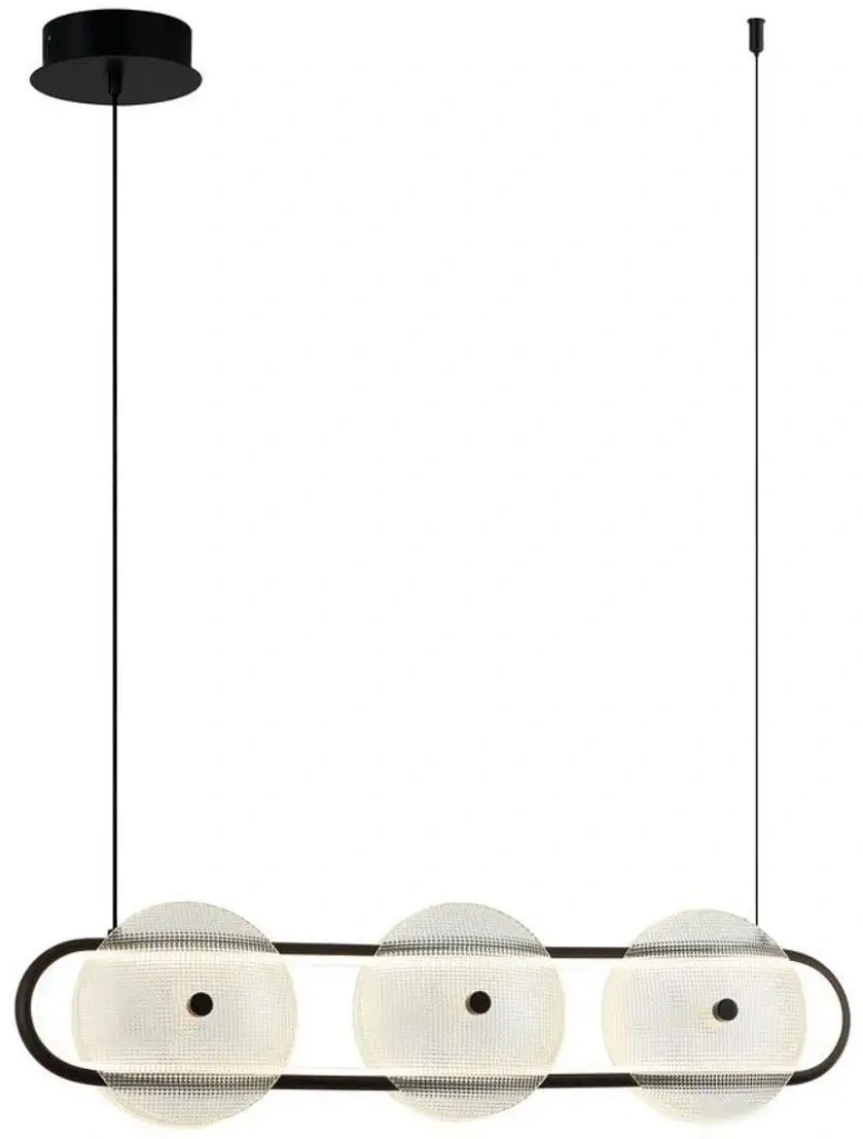 Подвесная люстра Omnilux OML-52503-03 выполнена в стиле модерн и подходит для домашних интерьеров с умеренной влажностью. Светильник оснащён тремя светодиодными лампами мощностью 17 Вт каждая, которые обеспечивают яркость 935 люмен с теплым светом цветовой температуры 3000 K. Каркас выполнен из металла, а плафоны из прозрачного стекла, что создаёт современный и элегантный вид. Люстра имеет ширину 61 см и регулируется по высоте до 116 см, что позволяет разместить её в разных помещениях. Светильник оснащён светодиодной подсветкой жёлтого цвета, которая добавляет уют. Он легко устанавливается и не требует дистанционного управления или регулировки яркости. Обеспечивает хорошее освещение, не повреждается от пыли и влаги благодаря IP20. Этот дизайн идеально подходит для гостиных или спален, создавая комфортную атмосферу.