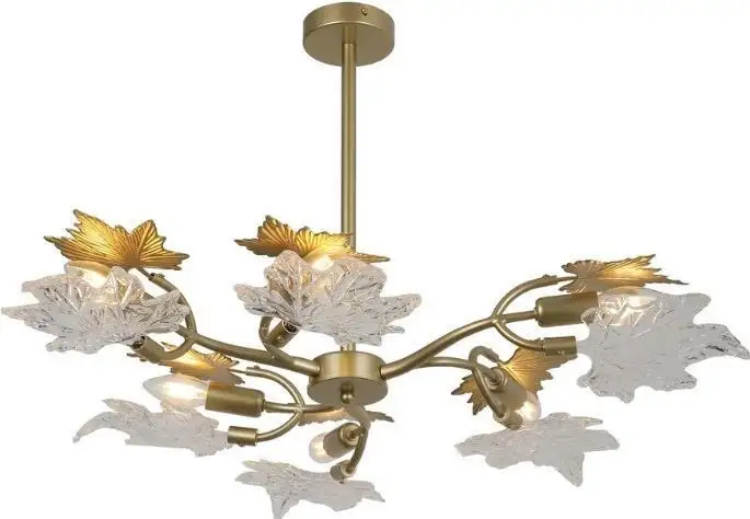 люстра, плафон золотистый/прозрачный (стекло/металл), каркас золотистый