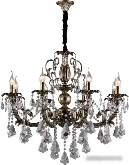 подвесная люстра, плафон прозрачный (хрусталь), каркас бронзовый
