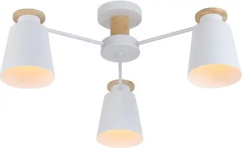 Люстра Rivoli Adna 9112-303 отлично подходит для современного интерьера. Её устанавливают на потолок, она имеет три лампы с цоколем E27, что позволяет использовать стандартные лампочки. Размер люстры — 65 см в длину и ширину, а высота — 26 см. Каркас сделан из дерева и металла, а плафоны — из металла в белом цвете, что придаёт ей стильный внешний вид. Люстра не управляется дистанционно и не интегрируется в "умный дом". Благодаря классическому дизайну она хорошо сочетается с разными стилями. Люстру удобно установить благодаря планкообразной крепёжной основе. Она не имеет поворотных ламп, но освещает помещение равномерно. Эта модель идеально подходит для гостиных и спален, создавая уютную атмосферу.