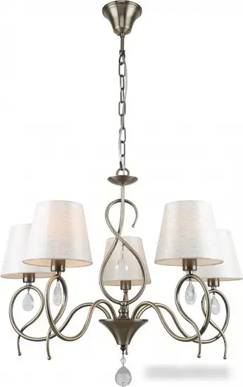 подвесная люстра, плафон белый (металл/хрусталь), каркас бронзовый