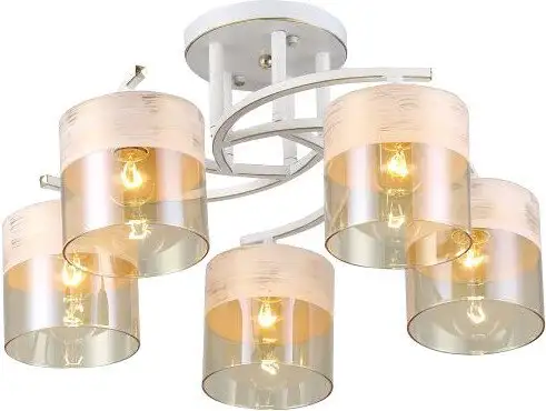 Люстра средней высоты Rivoli Constancia 9081-305 хорошо подходит для потолочных помещений. Она оснащена пятью лампами мощностью 40 Вт каждая, что обеспечивает яркое и равномерное освещение. Плафоны и абажуры выполнены в белом матовом цвете, а каркас — из металла с бело-золотистым оттенком, что создает стильный и современный вид. Размеры люстры — 50 см по длине и ширине, высота — 26 см, она гармонично вписывается в комнату любого размера. Планка-крепление облегчает монтаж и надежно удерживает конструкцию. В комплект лампочки не входят, поэтому их нужно приобретать отдельно. Благодаря прочному металлу и стеклянным плафонам, изделие долго сохраняет первозданный внешний вид. Эта люстра отлично сочетает стиль и функциональность, создавая уютную атмосферу в комнате.