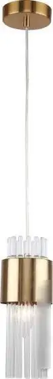 подвесная люстра, плафон прозрачный/золотистый (стекло), каркас золотистый