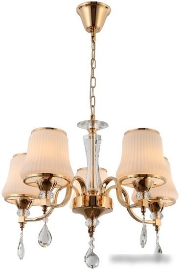 подвесная люстра, плафон золотистый/белый (стекло), каркас золотистый/прозрачный