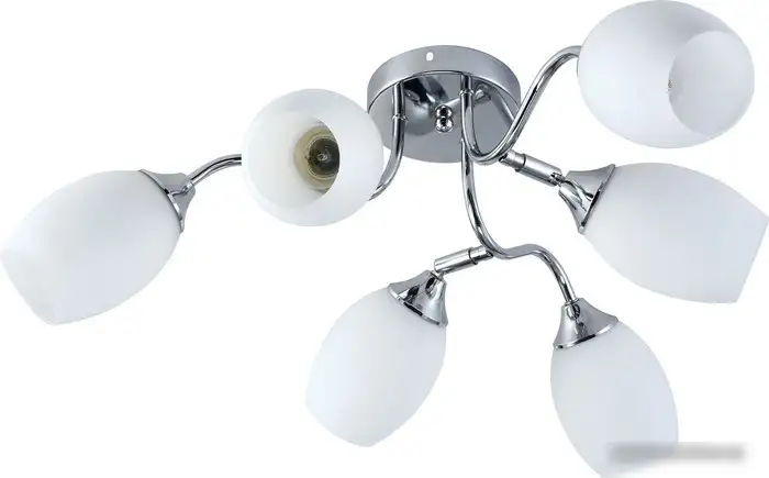 - Стильный хромированный каркас и белые плафоны — легко сочетаются с разными интерьерами.