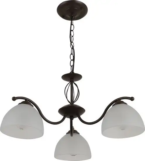 подвесная люстра, плафон белый (стекло), каркас коричневый