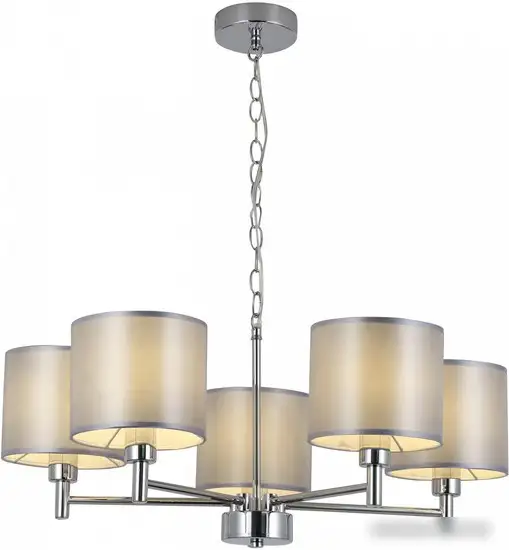 Подвесная люстра Rivoli Martha 2092-305 Б0061941 отлично подойдет для освещения небольших помещений площадью до 15 м². Она выполнена в стильном дизайне с серыми текстильными плафонами и серебристым металлическим каркасом, что делает интерьер более уютным и современным. Люстра включает пять ламп мощностью по 200 Вт каждая, что обеспечивает яркое освещение. Крепится к потолку на планку и имеет размеры 58х58 см с высотой 64 см, что позволяет легко её установить в разных помещениях. Вес устройства составляет 2.4 кг, что облегчает монтаж. Благодаря качественным материалам и современному стилю, эта люстра станет долговечным украшением вашего интерьера. В комплект лампочки и возможность регулировки яркости отсутствуют. Для удобства эксплуатации она не обладает функцией дистанционного управления или поворотных ламп. Этот светильник придает комнате светлый и современный облик благодаря сочетанию металла и текстильных элементов.
