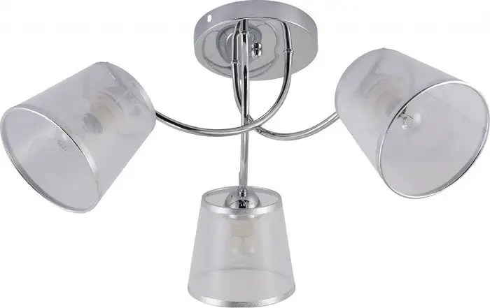 Эта люстра средней высоты Rivoli Shirley создаст уют в любой комнате. Она предназначена для потолочного крепления и имеет три плафона в серебристом цвете. Каждая лампа работает на мощность 60 Вт и использует цоколь E27. Каркас сделан из металла, а плафоны — из текстиля, что придает современный вид. Люстра длиной и шириной по 60 см легко впишется в интерьер. Высота изделия составляет 30 см, а вес — 0,82 кг. В комплект лампочки не входят, их нужно приобрести отдельно. Управлять ей не получится дистанционно, и она не интегрируется в "умный дом". Люстра проста в установке на планку и подойдет для разных помещений.