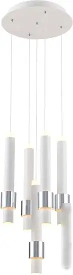 люстра средней высоты, плафон белый/хром (металл), каркас белый