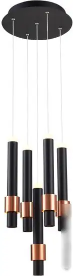 люстра средней высоты, плафон медный/черный (металл), каркас черный