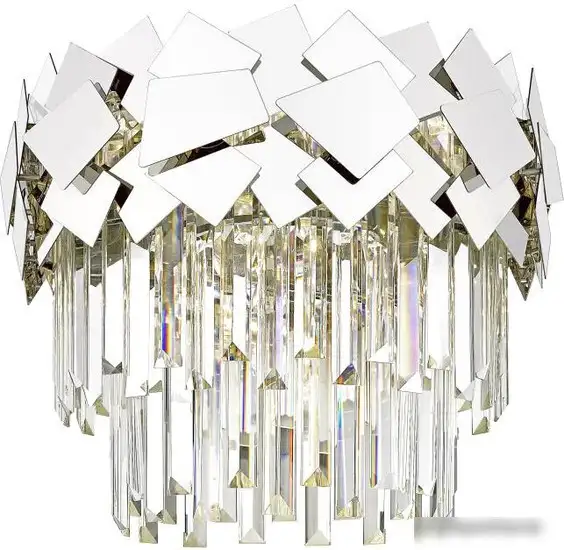 Эта люстра средней высоты идеально подходит для установки на потолок в помещении. Она оснащена пятью светильниками с цоколями E14 и мощностью по 40 Вт, что позволяет ярко освещать комнату. Каркас выполнен из прочного металла в хроме, а плафоны — из металла и хрусталя, что создает современный и стильный вид. Люстра имеет прозрачные плафоны, через которые свет равномерно распространяется по комнате. Размеры: длина и ширина по 41 см, высота 34.5 см, вес 1.7 кг — она не занимает много места и легко монтируется. Ее крепление — планка, что обеспечивает надежную установку на потолке. Люстра не обладает повышенной влагозащищенностью, её лучше убирать в сухие помещения. Она отлично подойдет для гостиной, спальни или кухни, создавая уютную атмосферу.