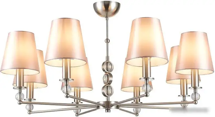 Люстра Simple Story 1057-8PL отлично подходит для среднего по размеру помещения. Она находится на потолке и имеет 8 ламп мощностью по 40 Вт каждая, что обеспечивает яркое освещение. Каркас выполнен из металла с никелевым покрытием, а плафоны из текстиля окрашены в нежный розовый цвет. Светильник подключается к цоколю E14 и не идет в комплекте с лампочками, что позволяет выбрать подходящую по яркости и цвету. Размеры люстры — 87 см по длине и ширине, а высота составляет 29.6 см. Она крепится через крюк, что облегчает монтаж. Простая и современная конструкция делает её подходящей для различных интерьеров. Люстра не обладает повышенной влагозащищенностью и не предназначена специально для детской комнаты.