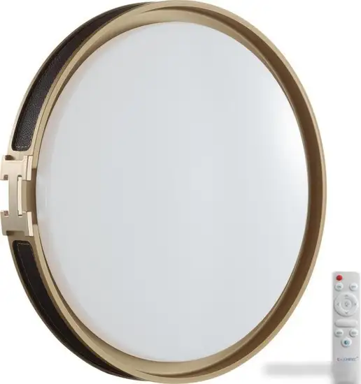 Светильник-тарелка Sonex Favemo Black 7667/EL имеет современный дизайн с белым, золотистым и черным цветами. Он устанавливается на потолке или на стене и оснащён одним светодиодным рефлектором, который обеспечивает яркий поток света — 6050 люмен. Светильник поддерживает регулировку яркости и цветовой температуры от 3000 до 6000 К, что позволяет выбрать комфортный свет для любого времени суток. В комплекте идёт дистанционное управление, которое удобно использовать для настройки параметров. Каркас выполнен из металла, а плафон — из металла, пластика и искусственной кожи, что делает его долговечным и стильным. Светильник легко монтировать и использовать в помещениях с повышенной влажностью благодаря уровню защиты IP43. Он не поворачивается, но фиксирует выбранное направление света. Устройство лёгкое, весом около 1.83 кг, и его высота всего 8 см. Светильник создан для модернового интерьера и обеспечивает хорошее освещение.