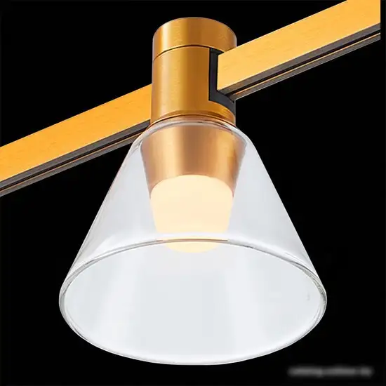 трековый светильник, плафон дымчатый/прозрачный (металл), каркас золотистый