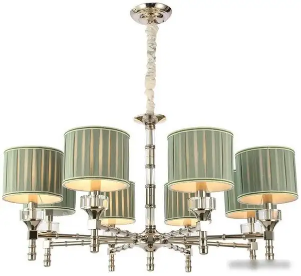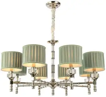 подвесная люстра, плафон зеленый (текстиль), каркас никель