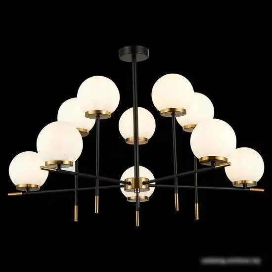 подвесная люстра, плафон белый (стекло), каркас черный/золотистый