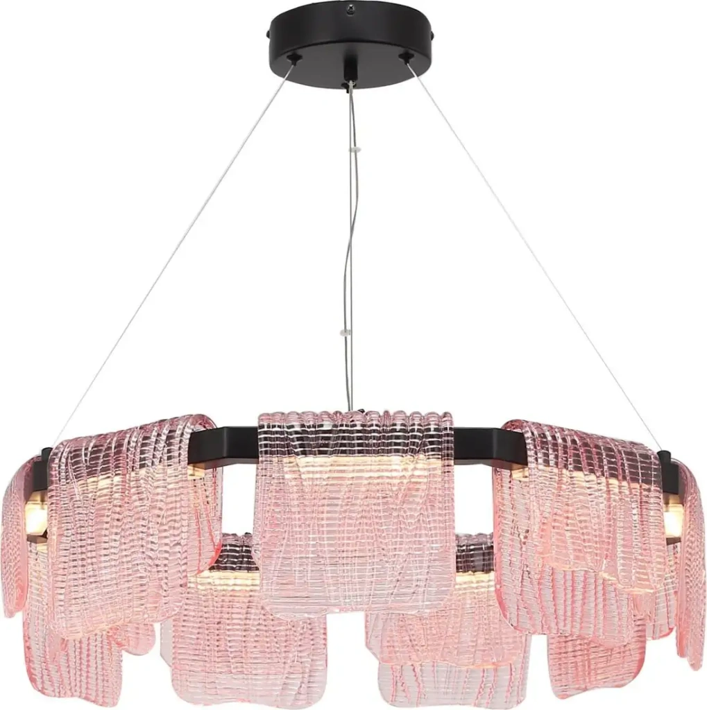 подвесная люстра, плафон розовый/прозрачный (стекло), каркас черный