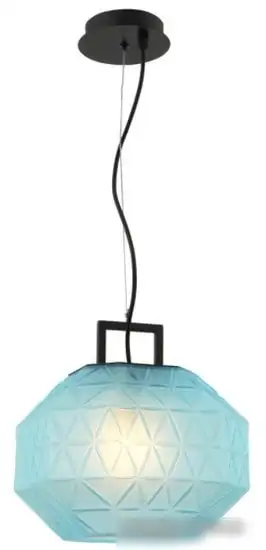 подвесная люстра, плафон голубой (стекло), каркас черный