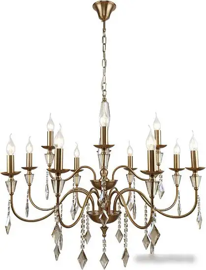Подвесная люстра Stilfort Grace 1053/05/12P создаёт яркое и уютное освещение в комнате. Она имеет 12 ламп мощностью по 40 Вт каждая, которые обеспечивают хорошую яркость. Прозрачные плафоны из хрусталя и бронзовый каркас придают классический стиль и элегантность. Люстра крепится к потолку на крюке и длиной 86 см, что делает её удобной для установки в разные помещения. Высота изделия составляет 188 см, её легко регулировать по высоте при монтаже. Устройство оснащено цоколем E14, что позволяет легко подобрать лампочки. Люстра не комплектуется лампочками, что даёт возможность выбрать их по своему стилю и яркости. Каркас изготовлен из металла, а плафоны — из хрусталя, что добавляет изысканности интерьеру. Это устройство подойдёт для классического оформления комнат и создаст приятную атмосферу.
