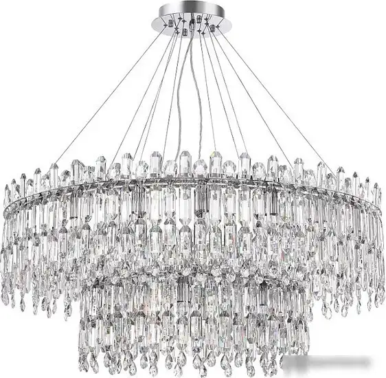 подвесная люстра, плафон прозрачный (хрусталь), каркас хром