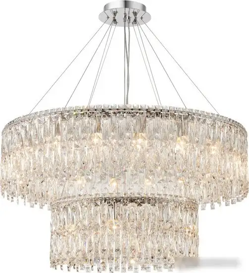 Подвесная люстра Stilfort Splendy создает яркое и прозрачное освещение для любого помещения. Она выполнена из металлического каркаса хромового цвета и украшена узкими прямоугольными подвесками из высококачественного хрусталя. Люстра оснащена 26 лампами типа E14 мощностью по 40 Вт каждая, что обеспечивает яркое и равномерное освещение. Ее длина и ширина составляют 100 см, а высота — 120 см, что позволяет ей хорошо вписаться в просторные комнаты. Каркас крепится к потолку на планке, монтаж прост и надежен. Люстра не имеет регулировок яркости или цвета свечения, что подходит для стабильного освещения. Благодаря хрусталю она создаёт красивый световой эффект и атмосферу уюта.