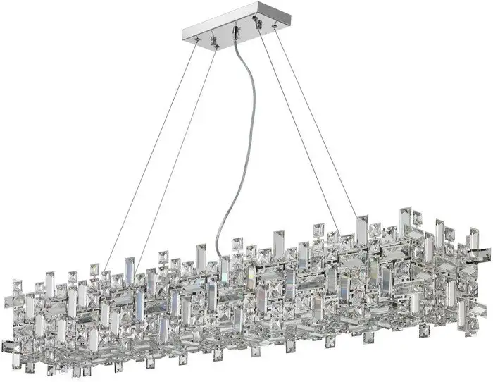 Подвесная люстра Stilfort Tetrix 2171/09/12PL выполнена из полированной нержавеющей стали, что создает современный и стильный облик. Она украшена качественным квадратно-прямоугольным из хрусталя, который придает интерьеру элегантность. Люстра имеет 12 ламп мощностью 40 Вт каждая, что обеспечивает яркое освещение помещения. В ней используются цоколи E14, лампочки в комплекте не идут. Каркас изготовлен из металла и покрыт хромом, что делает дизайн современным и прочным. длина люстры — 120 см, ширина — 25 см, а высота — 100 см, что позволяет разместить её в просторных комнатах. Благодаря вытянутой форме, она хорошо подходит для зон с высоким потолком. Простая монтаж и современный стиль позволяют легко интегрировать её в разные интерьеры.