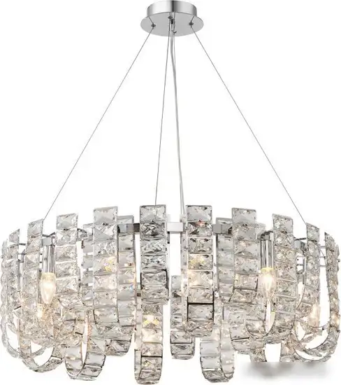| Информация | Подвесная люстра из серии UMIKO выполнена из металлической арматуры гальванизированной в цвет хрома и декорирована оригинальными элементами из хрусталя высокого качества. Хрусталь квадратной формы собран в стильные подвески овальной формы. |