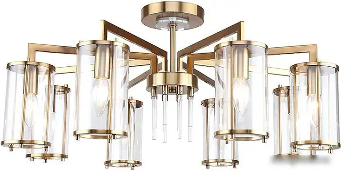 - Стильный бронзовый каркас и прозрачные плафоны — создают современный внешний вид.