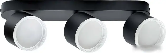 Спот TruEnergy 21040 – это современное потолочное освещение, которое состоит из трёх поворотных ламп мощностью 15 Вт каждая. Каждая лампа закреплена на планке шириной 36 см и может легко направляться в нужную сторону, чтобы лучше освещать пространство. Каркас выполнен из прочного металла черного цвета, а плафоны сделаны из прозрачного пластика, что придаёт стильный внешний вид. Этот спот включает встроенный выключатель, что удобно для управления светом. Устройство не требует подключения к системе "умный дом" и не комплектуется лампочками в комплекте — их необходимо приобрести отдельно. Благодаря компактным размерам (высота 12,5 см) и простому монтажу с помощью планки, его легко установить на любой потолок. Такой светильник идеально подходит для современного интерьера и помещений, где важно хорошее равномерное освещение.