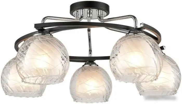 Припотолочная люстра Velante 234-107-05 отлично подходит для освещения любых помещений. Ее каркас выполнен из прочного металла с хромированным и черным покрытием, что придает современный вид. Люстра оснащена пятью лампами мощностью по 60 Вт, обеспечивающими яркое освещение. Размеры устройства – ширина 57 см и высота 26 см, что делает ее универсальным выбором для разных комнат. Светильник не имеет встроенного выключателя и регулировки высоты, монтаж происходит прямо на потолок. Плафоны из стекла добавляют эстетики и равномерно распределяют свет. Эта модель не повышена влагозащищенностью и не предназначена для помещений с высокой влажностью. В отличие от умных моделей, она не подключается к системам управления, но легко устанавливается и отлично освещает пространство.