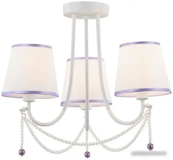 припотолочная люстра, плафон белый/фиолетовый (текстиль), каркас белый