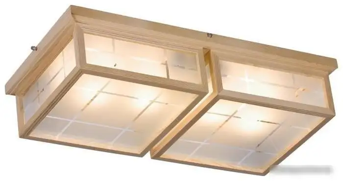 припотолочная люстра, плафон белый/бежевый (стекло/дерево), каркас бежевый