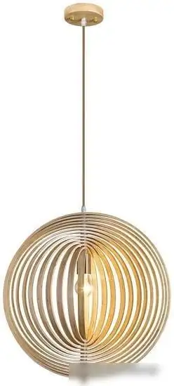 подвесная люстра, плафон бежевый (металл/дерево), каркас золотистый/бежевый