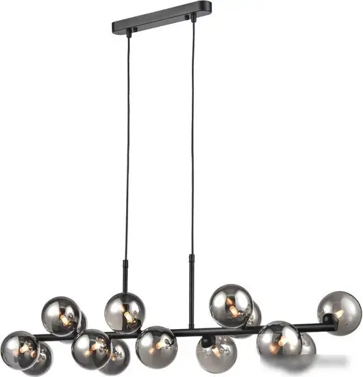 Подвесная люстра Vele Luce Bond VL5632P14 — современное украшение вашего интерьера. Эта люстра располагается на потолке и идеально подходит для просторных помещений. Она оснащена 14 светильниками с цоколем G9, каждый мощностью 25 Вт, что обеспечивает яркий и равномерный свет. Каркас выполнен из прочного металла в черном цвете, а плафоны — из стекла со серым оттенком, что создает стильный и сдержанный вид. Люстра длиной 100 см и шириной 23,5 см легко впишется в любой интерьер. Высота изделия составляет 97 см и её можно регулировать при монтаже. Она крепится на планку, что обеспечивает надежное закрепление. Благодаря современному дизайну, эта люстра добавит нотку элегантности в комнату. Кроме того, она легко устанавливается и служит долговечно.
