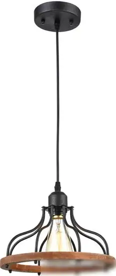 подвесная люстра, плафон черный/коричневый (дерево), каркас черный