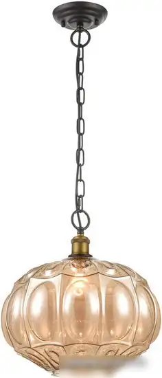 подвесная люстра, плафон янтарный (стекло), каркас коричневый