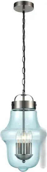 подвесная люстра, плафон голубой (стекло), каркас никель
