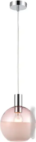 подвесная люстра, плафон розовый (стекло), каркас хром