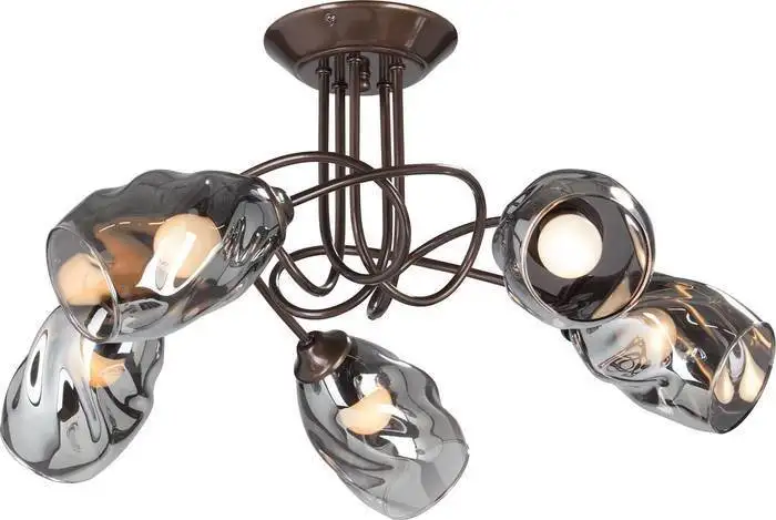 люстра средней высоты, плафон серый (стекло), каркас коричневый