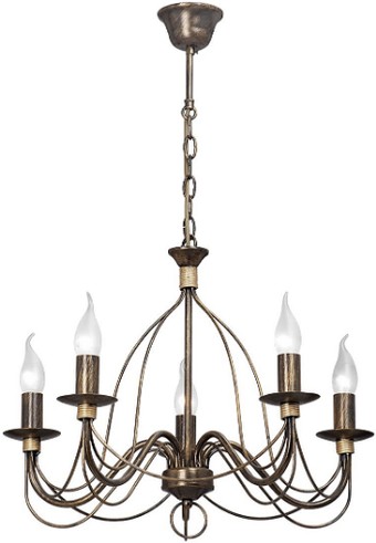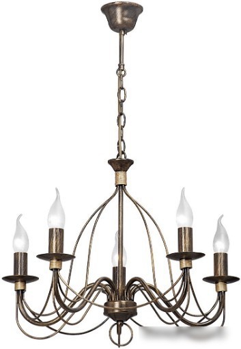 Подвесная люстра Vitaluce V1034/5 отлично подойдет для любой комнаты благодаря классическому дизайну и теплому бронзовому цвету каркаса. Она оборудована пятью лампами мощностью 60 Вт каждая, что обеспечивает яркое освещение. Люстра крепится к потолку на крюк и имеет регулируемую высоту, что позволяет выбрать оптимальное расстояние от потолка. Каркас сделан из металла, он прочен и долговечен. Пять цоколей типа E14 позволяют легко подобрать или заменить лампочки. В комплект лампочки не входят, их нужно докупить отдельно. Устройство не оснащено пультом или функцией регулировки яркости, что делает управление простым. Отсутствие поворотных ламп и LED-подсветки делает дизайн лаконичным и классическим. Вес люстры составляет 1,9 кг, что удобно для монтажа и эксплуатации.