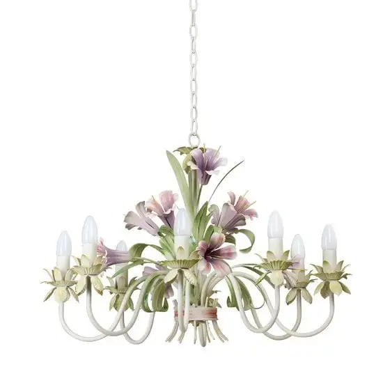 Подвесная люстра Vitaluce V1116/8 отлично подходит для освещения просторных помещений. Она оснащена восемью лампами мощностью по 60 Вт, что обеспечивает яркий и равномерный свет. Каркас выполнен из металла и украшен в классическом стиле с белым, зелёным и фиолетовым цветами, что легко впишется в любой интерьер. Люстра не имеет выключателя и пульта дистанционного управления, но её длину можно регулировать, чтобы удобно расположить свет. Нет функции поворота ламп или регулируемой яркости, однако это простой и надёжный вариант для постоянного освещения. Крепление осуществляется крюком, а длина составляет 68 см, ширина — тоже 68 см, а высота — до 126 см. Подходит для ламп накаливания и светодиодных, цоколь E14, что позволяет выбрать подходящий тип освещения. Благодаря классической форме и качественным материалам эта люстра украсит любой дизайн комнаты.