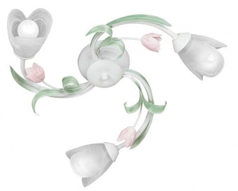припотолочная люстра, плафон белый (стекло), каркас розовый/белый/зеленый